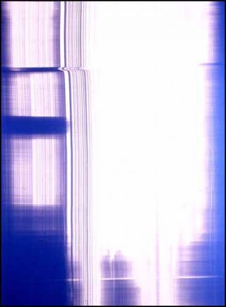 A l’inverse de ces Reflets qui proposent un espace saturé de couleur, Distraction et Vide Fait déclinent le vide d’un espace blanc laissé vacant par une peinture reléguée sur les bords. Hysbergue n’emploie cette fois ni brosse ni pinceau. Pour Distraction, il se sert d’une très grande spatule ou raclette qui imite pourtant des traces de brosse. On ne peut manquer de penser aux brush-strokes parodiques de Lichtenstein reproduisant, dans un travail sérigraphique, des traces de pinceau agrandies: même mise à distance de la touche et de la subjectivité qu’elle véhicule. Le racloir est passé deux fois sur le support — une fois dans le sens horizontal, une fois dans le sens vertical — pour y déposer ce qui apparaîtra comme des traces de peinture. Le processus et le geste sont au coeur de cette démarche. On a l’impression que l’artiste procède par saccades, de façon discontinue, que le geste, orienté et mécanique, inclut des pauses qui, par un hasard calculé, viennent s’inscrire dans l’image.