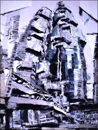 — Hong-Kong. Deux Tours, 2003. Peinture à la cire sur toile. 230 x 170 cm. 90