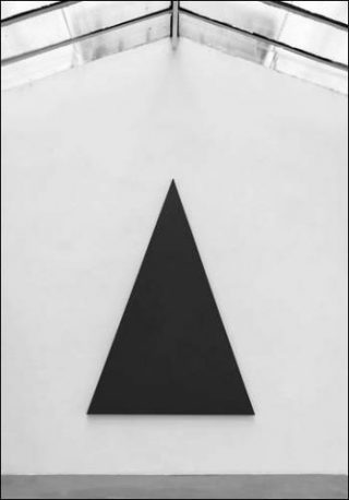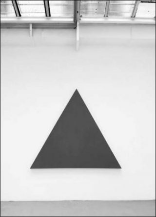 Les grands triangles isocèles et équilatéraux confrontés à des formats beaucoup plus modestes imposent une sobre matérialité due à la subtilité des nuances de gris mais aussi au soin apporté à la présentation de l’ensemble. Alan Charlton a toujours accordé une place prépondérante au lieu puisque ses peintures interagissent non seulement avec les murs mais avec l’espace tout entier, imposant une indéniable réalité physique. Pour l’artiste, l’espace fait partie intégrante de l’œuvre.
