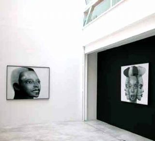 D’abord les œuvres récentes. De grands tirages de photographie numérique présentant des visages mutants, mi-femme mi-démon, caractérisés par leur double identité. Africains d’un côté, européens de l’autre. Moitié noirs, moitié blancs. Les figures sont approximatives, leurs traits se liquéfient, glissent d’une tonalité à une autre troublés par cette double appartenance.