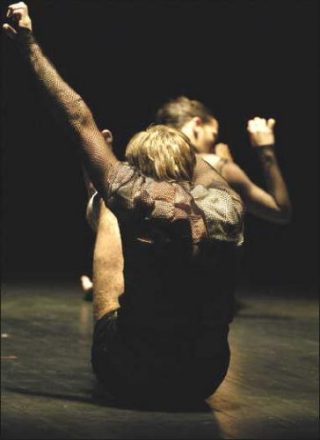 Un homme et une femme en duo: Lointain. Puis, deux femmes, côte à côte, les pieds rivés au sol, scandant un même mouvement, le visage sans cesse transformé: Luisance. Enfin un film, projeté sur un tulle, plan rapproché sur deux corps masculins enchevêtrés: Lacis…