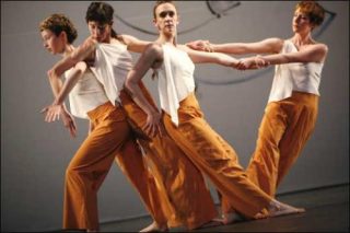 Conçue en 1983, Set and Reset, pièce inaugurale (et petit bijou) de la soirée, est déjà loin de cette première période expérimentale, et d’autant plus importante dans la carrière de la chorégraphe qu’elle marque, non seulement son retour au théâtre à l’italienne mais l’aboutissement du cycle « Structures moléculaires instables » où le mouvement est pensé comme un flux continu.