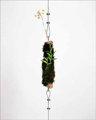 — Orchid (Instrumental), 2002. Installation : branche d’arbre, orchidée, humidificateur, éclairage haute pression au sodium.