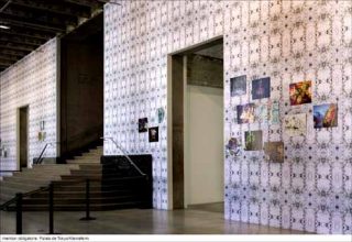 Le grand mur de l’entrée est occupé par une installation de Gerda Steiner et Jörg Lenzlinger: Grottes sauvages sur forêt cérébrale civilisée. Toute la longueur de ce mur est recouverte d’un papier peint, innervé par un motif symétrique sur le modèle des peintures pliées, où le fil de couleur se substitue au tracé du dessin. Des photographies accrochées parsèment ce mur immense, images confuses recomposant une nature de synthèse, hybride et méconnaissable.