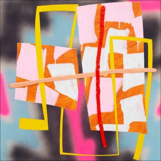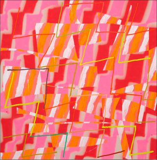 La répétition même des motifs semble se moquer de l’infinie reproductibilité des Å“uvres numériques. Mais ces motifs géométriques répétés naissent à chaque fois d’un geste unique, de la rencontre du relief extrudé et modelé de la toile avec la peinture, parfois posée à l’impasto, directement du tube sur le tableau. Il en résulte des Å“uvres en trois dimensions, irréductibles à un écran, qui dépassent la dimensionnalité de la toile et vivent, hors du mur.