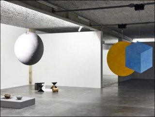 Autour du système solaire, sur des étagères, socles ou des présentoirs, douze ensembles d’objets sculptés, disparates et mystérieux, en bois, bronze et marbre. Extraits de la série des «Antipodes», ils reposent sur le principe d’une complémentarité entre deux pôles, incarnation d’une conception dialectique de l’ordre du monde, chacun constituant un tout organisé et clos sur lui-même. Certains se présentent comme des casse-têtes et s’emboitent (un cylindre dans son tube, deux cônes dans un sablier, une demi-sphère dans ce qui pourrait être son moule…), d’autres prennent la forme de petits coffres ouverts ou fermés, quand les derniers sont enfermés dans des boîtes en plexiglass colorées. Les unes sont mises en rapports avec des objets naturalistes (un crâne, une orange), tandis que d’autres s’inspirent davantage de mécanismes (une roue sur un rail) ou d’instruments de mesure (l’héliomètre). Le jeu de contraste qui s’opère entre les matières, les couleurs, les formes et les associations d’idées finit de dérouter la perception et accentue le sentiment d’incompréhension que suscitent ces œuvres: sommes-nous face à des sculptures purement formalistes ou doit-on leur assigner un sens ? Jouant de leur caractère à la fois magique et pseudo-scientifique, ces reliques antipodiques suscitent une réaction ambiguë, entre contemplation purement gratuite et recherche d’une valeur historique ou métaphysique.