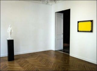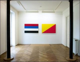 Rosa Luxemburg est bien l’œuvre centrale de l’exposition, mais qu’on ne s’y trompe pas, le sujet ici est conceptuel — il ne s’agit pas de rendre hommage à sa carrière, sa rigueur doctrinale, ou sa beauté féminine. L’artiste développe un principe de réactivation anachronique d’un personnage historique. Employant un vocabulaire minimaliste et sobre, Nicolas Milhé interroge le statut de l’image. Et, par un détour pictural, puise dans les oubliettes de l’histoire des motifs de drapeaux dont les symboles graphiques et colorés portent une charge éminemment idéologique, dont la plasticité simple et l’intérêt visuel évoquent une peinture géométrique brutaliste.