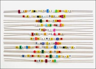 Partant du même principe, Bien faire et laisser rire… exploite le caractère ludique des jetons de scrabble et des alphabets pour enfants. L’assemblage de ces caractères en plastique forme des phrases multicolores. Collées sur de fines brindilles en bois, les phrases se succèdent, comme sur les lignes d’une page.