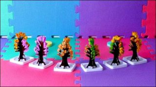 Avec ces dalles et petits arbres, qui sont des jouets aux couleurs vives, François-Xavier Courrèges ressuscite de manière ironique la magie de l’enfance: animés d’une vie de carton-pâte, ces arbres en papier se revêtent progressivement, au moyen d’un processus chimique, d’un feuillage synthétique de couleur vive. Puis la matière se dégrade et les arbres se dénudent. Véritable cycle de vie et de mort, cet environnement nostalgique évoque la fragilité et la dégradation.