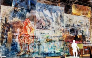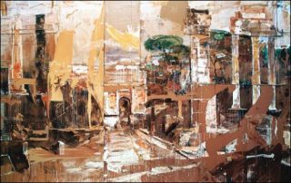 La peinture est le médium favori de Valery Koshlyakov, mais il a considérablement étendu son champ par ses techniques de collages ou d’assemblages, et par la production d’installations et de sculptures. Il crée de vastes compositions dans lesquelles les notions de civilisation et d’architecture sont prégnantes.