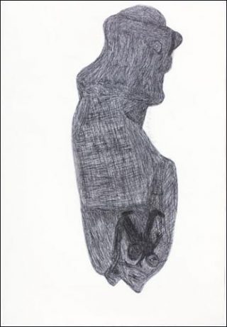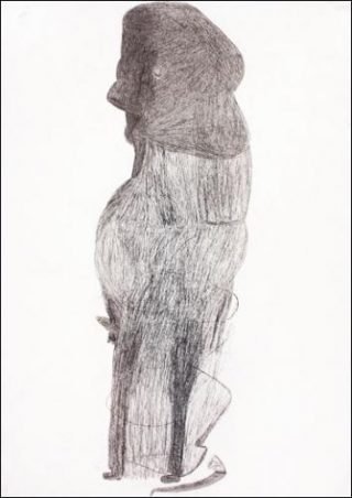 Celui qui se mariera et deviendra père de quatre enfants est décrit par ses proches comme une personnalité complexe, d’une franchise et d’une obstination désarmantes. Ce n’est qu’à l’âge de quarante ans qu’il se met subitement à dessiner ses personnages énigmatiques dont il affine au fil du temps la technique, proche de la hachure croisée, tout en en augmentant les formats. C’est comme si, soudain, il se libérait des fantômes de son passé. Démoniaques, difformes, chimériques, tous paraissent voilés, tandis que seul un regard, un rictus et, plus souvent un sexe les rendent tangibles, incarnés, dévoilés.