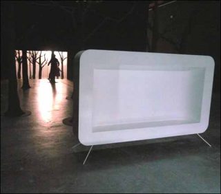 Loris Gréaud poursuit le même but quand, en enregistrant un encéphalogramme de sa pensée de l’exposition du Palais de Tokyo, il désigne son cerveau comme le lieu de sa puissance créatrice ; ou quand il fait par intermittences émerger sur un grand mur noir les élévations et perspectives fluorescentes d’un mystérieux et lointain «Atelier», sorte de super «Studio», qualifié de «centre de l’imaginaire de l’exposition» ; ou quand, dans la lumière d’un astre tour à tour lunaire et solaire, il nous fait traverser une très étrange forêt d’arbres carbonisés enduits d’un «composite élaboré à partir de poudre à canon», et côtoyer 140 tubes fluorescents qu’une connexion électrique feraient exploser parce que, selon la rumeur, le gaz lumineux aurait été remplacé par du propane…