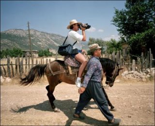 Des champs de course aux plages, l’oeuvre de Martin Parr piste les dérapages de la société de consommation, la recherche frénétique de loisirs, notre goût prétentieux pour l’argent et la célébrité, la vacuité de nos conventions sociales…