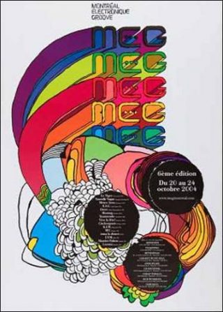 — Affiche pour le festival Montréal Electronique Groove, 6e édition, 2004. Papier.