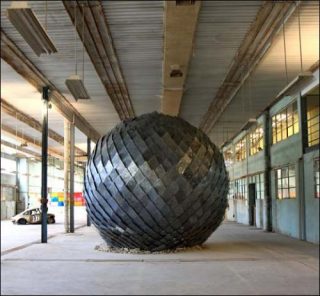 De fait, cette abstraction géométrique qui affleure l’architecture par ses proportions – elle entretient en tous les cas une forme de dialogue avec ce qui l’environne – pose par son étrangeté les motifs d’une réflexion qui porte sur la présence. Cette même présence un peu métaphysique que l’on confère aux objets restés incompris, alors que leur ossature rigoureuse par la construction, laisse présager d’une logique interne mais insondable. Une oscillation se perçoit dans l’œil du regardeur, les sphères d’Antoine Dorotte semblent courber les lignes de l’espace et du temps qui les accueillent, pour qu’un peu à la manière des monolithes noirs de Stanley Kubrick, dans son Odyssée de l’espace, l’on soit tenté d’y associer simultanément toutes les questions et réponses du monde.