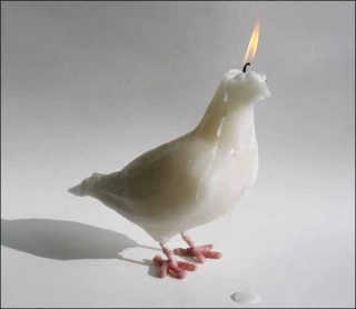 — Pigeon, 2008. Installation. Sculpture en cire de bougie.