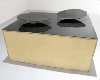 Burkard Blümlein instaure un dialogue au sein de chacune des propositions autant qu’entre celles-ci. Tel processus appliqué à un objet se voit ailleurs inversé. Ainsi, au fait de poser librement une chose sur une surface répondent dialectiquement son percement, sa fixation au mur ou son inclusion dans le matériau.