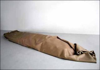 La figure métonymique de l’installation Volume intérieur de Guillaume Leblon confère à l’objet post-minimaliste une actualité certaine. Une moquette présentée enroulée, mais taillée à la dimension de la salle qui l’accueille, suscite une série de questions sur les raisons qui ont conduit à son abandon: enveloppe d’un corps inconnu, simple moquette d’une autre exposition, etc. A quoi sert la frustration, sinon à exciter l’imagination et à enclencher un processus herméneutique?