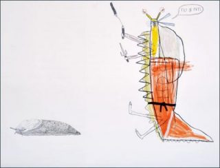 Adrien Vermont s’inscrit dans l’héritage de Conrad Gesner pour mieux le dépasser, presque le dynamiter par son dessin. Sitôt son diplôme des Beaux-Arts obtenu, l’artiste a décidé de s’isoler pendant de longs mois, entrant dans ce qu’il a lui-même nommé sa période de «désapprentissage», période pendant laquelle il a cherché à retrouver la candeur et l’efficacité narrative du dessin chez l’enfant.
