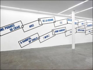 Lawrence Weiner, que l’on considère communément comme une figure centrale de l’art conceptuel, présentera une série de travaux spécialement développés à l’occasion de cette exposition intitulée: «Une poignée de craie. A handful of chalk».