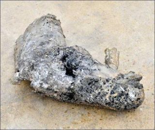 Jean-Marie Perdrix fabrique ainsi une céramique qu’il remplit à nouveau de charbon et pulse de l’air, reproduisant le creuset initial. Il mélange son bronze en fusion dans le charbon et dans les os. Tout cela, comme si il avait rassemblé en une fois les étapes de fabrication d’un bronze traditionnel. L’amalgame os–cendres-charbon-bronze, qui est le résultat, lui permet d’alléger l’ensemble.