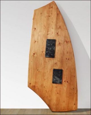 La blondeur et la patine du sapin ajoutent à la douceur des lignes, qui évoquent paradoxalement les pliages de tôle de Jean Prouvé.