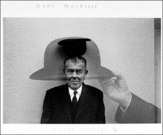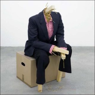 Cette année, le Frac Normandie Caen présente l’exposition «Nom d’un petit bonhomme», en réponse au thème du projet départemental «Portrait(s)… en perspectives» proposé par l’Éducation Nationale aux enseignants du Calvados. Dans les portraits exposés au Frac, le costume et les accessoires prennent autant de place que le modèle qu’ils accompagnent. Le complet-cravate est ainsi plusieurs fois revêtu dans l’exposition. Définitivement masculin, il est l’uniforme de monsieur-tout-le-monde et fait basculer celui qui le porte vers l’anonymat. Il permet à Duane Michals de symboliser l’oeuvre et la personnalité de René Magritte, il est aussi la tenue du burlesque chez Philippe Ramette ou Jürgen Klauke. Revêtu par l’artiste lui-même, il en fait un individu comme un autre ou, au contraire, un clown, figure que l’on retrouve dans l’autoportrait en pantin de Florence Paradeis.