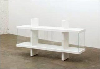 Units ne donne au regard aucun élément d’échelle. Il s’apparente aussi bien au meuble qu’à l’architecture. Chaque module est le résultat d’une opération de démoulage de plâtre coulé (à l’état liquide) dans son moule/matrice. Il s’agit d’un plâtre blanc mat technique, d’une densité inégalée. Le poids de chaque module assure la stabilité des empilements sans recourir à la mécanique. Des portes vitrées transparentes ou opaques coulissent entre les modules superposés.