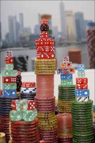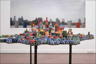 Voici une œuvre qui ne laissera pas les spéculateurs immobiliers indifférents. L’installation Unreal Scene de l’artiste chinois Liu Jianhua constitue en effet un curieux plan en relief de Shanghai. Au centre de la pièce, sur des plateaux en métal dont la découpe reprend les limites administratives de cette mégapole chinoise, l’artiste a dressé des piles de jetons de casino. Juxtaposées et de différentes hauteurs, elles sont une évocation assez précise de la densité urbaine et de la nature des édifices de Shanghai : de très hautes tours sont agglutinées de part et d’autre du fleuve Huang-p’ou qui est la seule partie du plan de Liu Jianhua laissée en réserve. Si la topographie de la ville est scrupuleusement respectée, l’artiste n’a pas poussé son souci documentaire au point d’indexer la valeur des jetons sur le prix du foncier, variable selon les différents quartiers de la ville.