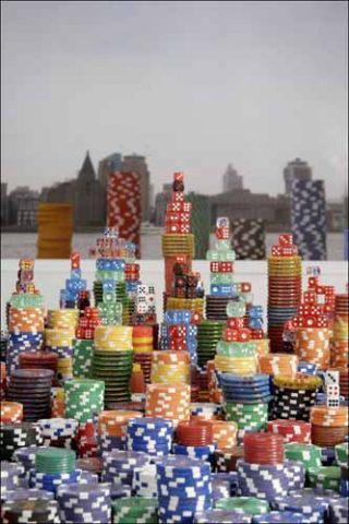 Enfin, les jetons de casino évoquent aussi la précarité du jeu de hasard, le retournement brusque de situations apparemment favorables. Ils renvoient ainsi à l’ambivalence du progrès, ou selon l’artiste, à la « double nature » de toutes choses.