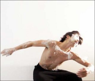 Dans sa performance située aux confins du théâtre et de la danse, le japonais Mirai Moriyama est enveloppé dans une sorte de membrane translucide censée représenter le système d’exploitation d’un ordinateur. Par ses gestes, ses mouvements, sa danse, il parvient peu à peu à la craqueler pour finir par s’en extraire. Cette performance dansée représente le remplacement d’un système d’exploitation par un autre et, par extension, l’intégration de valeurs nouvelles qui brouillent les frontières entre l’objet et le sujet.