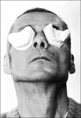 En témoignent les yeux clos, ou occultés par divers objets, autant que les regards hallucinés, perdus dans un hors champ aveugle. L’ouverture au monde s’effectue précisément dans le déploiement de cet autoportrait photographique, fragmenté et multiple, seul à même de retenir les moments d’un tâtonnement inlassable, dans une quête d’identité impossible.