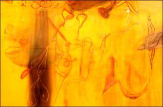 La feuille vierge comme espace de création. Tel un démiurge insensé, l’artiste tente d’y ouvrir des mondes inconnus, entre innocence des origines, et poids d’une culture séculaire, assimilée et assumée. Des figures flottent entre l’informe et l’alambiqué des contorsions baroques, sèchement plaquées à la mine de plomb, parfois rehaussées de couleurs grasses, ou bien encore enveloppées de lavis étale.