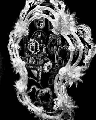 Au début je me suis attachée à photographier uniquement des objets, pas du tout des êtres, et en plus des objets d’apparat — des cristaux, des miroirs, des plateaux d’argent, etc. A cette époque tout fonctionnait de façon métaphorique, ces objets étaient presque comme un substitut d’être. Au-delà de ça, ce n’était pas tellement des photos d’objets que je voulais mais des photos du spectre lumineux de ces objets. Il y a une désincarnation totales des objets qui fait que l’on échappe à l’aspect anecdotique que pourrait avoir ce type de photographie. Dans les premières photos d’argenterie on a l’impression d’être devant un négatif, on ne sait plus si c’est un négatif ou un positif tellement l’objet a été désincarné, vidé de tous les reflets anecdotiques. Dans les miroirs on voit l’ensemble comme une radiographie de l’objet.