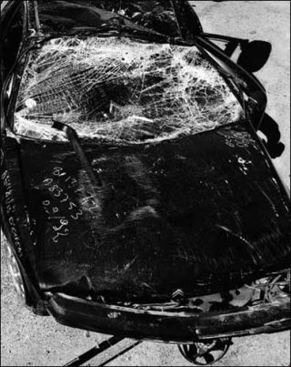 Je ne sais pas si on peut employer ce mot qui appartient à une tradition picturale et à l’histoire de l’art, mais, de par ma proximité aux processus, aux modes photographiques, il y a un arrêt du temps, une pétrification du temps, de la vision et des choses. Par exemple, avec la série des « Voitures accidentées », ce qui m’a intéressé c’est qu’elles étaient déjà une première fois pétrifiées par le choc de l’accident et une deuxième fois par la photographie. En cela, on peut parler de nature morte. Même les êtres vivants sont pris dans un entre-deux, ils sont entre l’animé et l’inerte. Le réel dans mon travail est monumentalisé, il devient comme une sculpture, je ne suis pas du tout dans l’enregistrement d’un flux, dans l’image-mouvement.