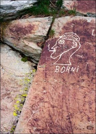 Les graffitis de la vallée datent, pour certains, d’il y a 5000 ans. Sur un site qui s’apparente à un vieux sanctuaire, ces graffitis esquissent notamment deux étranges figures qui parsèment abondamment les parois des rochers: le dieu Taureau, représenté par des cornes, et la déesse Terre, qui forment un couple mythologique symbolisant la fertilité. La valeur cultuelle de l’art et de ces quelques figures contraste toutefois avec des gravures plus prosaïques. Certaines datent de la Renaissance, d’autres témoignent du passage de soldats ou de bergers (une gravure dessine les traits d’un homme de profil portant un béret, en train de fumer). Une lame de couteau et la signature d’un certain Batista se répètent maintes fois. Un quadrillage évoque la division des terres en différents lopins. Plus étonnant, on reconnait les Twin Towers, malgré l’interdiction de graver quoi que ce soit sur le site depuis 1954.