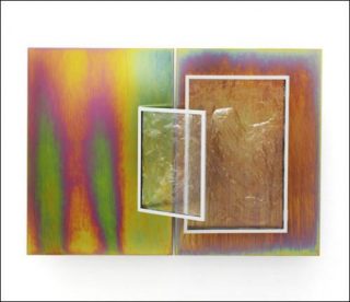 S’inspirant des techniques industrielles de prototypage et de packaging, Nicolas Deshayes a fixé sur les panneaux d’acier, des reliefs plastiques thermoformés dont les motifs suggèrent une matière liquide figée dans son mouvement, créant des espaces cloisonnés très suggestifs.