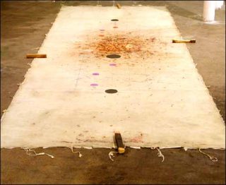 — Le Temps, 1993-2003. Toile au sol. 516 x 161 cm.