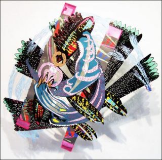 Les dessins de Benjamin Hochart se situent entre figuration et abstraction. Ils sont constitués de lignes entrelacées, d’angles tordus et de plages de couleurs vives qui résultent d’un protocole fixe: les crayons ou stylos sont placés à portée de main, et chacun doit être utilisé au moins une fois avant qu’il puisse être utilisé une deuxième fois. L’artiste crée ainsi des réseaux extraordinairement détaillés où géométrie et chaos se substituent l’un à l’autre.