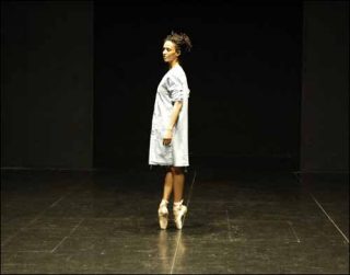 Ses premiers pas sur scène ont la rigueur des marches militaires. Du haut de ses pointes de ballerine, elle nargue l’assistance de son attitude hautaine, affiche une fierté manifeste que lui confère, à l’évidence, sa verticalité vertigineuse et sa posture de « regardée ».