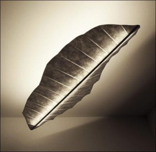 On note avec le luminaire Plume de Bold Design (William Boujon et Julien Benayoun) la recherche de la légèreté obtenue par le choix des matériaux (aluminium, Tyvek et Sparkle Drop Paper), l’utilisation de la technique élaborée du pliage pour garantir à la fois rigidité et mise en forme et un travail sur les leds qui diffusent la lumière par réflexion et par transparence.
