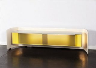 La galerie Via présente quatre aides à projet qui révèlent les tendances émergentes du design contemporain. Ainsi, on remarque la création de mobilier hybride comme le projet Wide de Vincent Tordjman, à la fois meuble, amplificateur/enceinte sans fil et luminaire. Développés avec un ingénieur acousticien, la structure autant que les systèmes électroniques de ce meuble audio –qui peut également être utilisé comme home cinéma– permettent d’obtenir une qualité de son très haute fidélité.