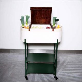 L’îlot, rafraîchisseur domestique, reprend la technique ancestrale du frigo du désert. Une première cuve en faïence remplie de sable humidifié encercle une seconde cuve. Le compartiment central est rafraîchi de 10 à 15 °C par évaporation de l’humidité du sable permettant ainsi de conserver les aliments sans consommer d’énergie.