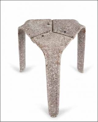 Ainsi en est-il de la bibliothèque Fossile de El-Oulhani, Garzon et Sionis, composée de modules empilables de terre cuite, ou du tabouret Particules, en particules de bois compressées d’Adrien Rovero.