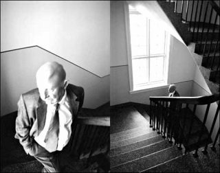 Avec les pièces photographiques et la vidéo titrées Old Man Going Up And Down A Staircaise, Vibeke Tandberg amplifie d’ailleurs un tel sentiment d’étrangeté. L’artiste s’est en effet glissée dans la peau d’un vieil homme alors qu’elle était en fin de grossesse : le corps vêtu d’un costume sombre et d’une cravate, les traits grimés et le crâne rendu chauve, elle monte et descend les escaliers d’un immeuble, avec toutes les difficultés liées à son état.