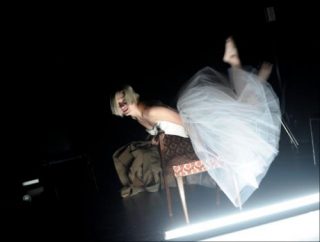 Malgré ces blocs disparates, une histoire se tisse en filigrane – histoire d’amour qui débute par un speed dating, manque de finir en divorce après une scène conjugale humiliante et se résout en un happy end calqué sur les films hollywoodiens. Tout cela sur fond de scènes de chasse aux sorcières où la pression du groupe, dans une émulation communiste, corporatiste, frôle la torture. Le rythme reste toujours survolté, véhicule un humour absurde, grotesque. Dans cette dépense d’énergie folle, les matériaux corporels les plus variés sont jetés en jeu. Il y va de corps désarticulés, segmentés, à l’instar de ce visage en très gros plan, flottant sur l’écran, des corps de zombies qui bavent et vacillent dans leur avancée vers le public. La parole dispose d’une place de choix et, à travers une traduction assurée en direct sur le plateau, la langue française, comme sonorité avant tout, solidifie le lien avec le public.