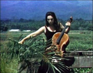Charlotte Moorman joua aussi dans les vidéos de Paik, parmi lesquelles l’emblématique Global Groove (1973) et Guadalcanal Requiem (1979).