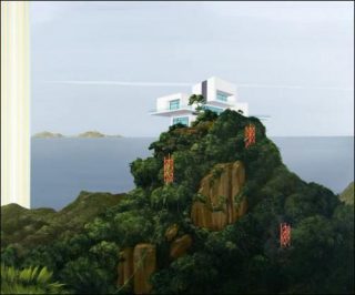 La recherche de la «meilleure» vue est ancrée en nous depuis des millénaires, qu’il s’agisse des maisons de Malibu en Californie ou de sites bien plus anciens comme Meteora en Grèce et la ville sainte de Lhassa au Tibet. «Il y a bien sûr un aspect psychologique important à vouloir habiter un tel endroit, à commencer par celui de le posséder. Mais c’est le message que véhicule un espace de projection vers l’extérieur qui m’intrigue», explique Dean Monogenis. A travers l’architecture, c’est le sentiment d’appartenance propre à une culture qui intéresse le peintre.