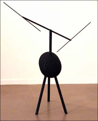 — Sans titre* (suspension noire, six baguettes), 2003. Bois peint. 85 x 100 x 70 cm.