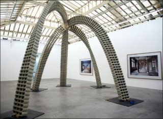 Contrepoint artisanal, branlant et dérisoire, le minimalisme presque absurde des sculptures modulaires de Vincent Ganivet donne finalement aux colonnes et arcades de l’architecture classique glorifiée par Candida Höfer, le jeu qui leur manquait.